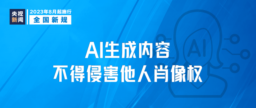 《生成式人工智能服務(wù)管理暫行辦法》8月15日起施行,提供和使用生成式人工智能服務(wù)應(yīng)當(dāng)尊重他人合法權(quán)益,不得危害他人身心健康,不得侵害他人肖像權(quán)、名譽(yù)權(quán)、榮譽(yù)權(quán)、隱私權(quán)和個(gè)人信息權(quán)益。