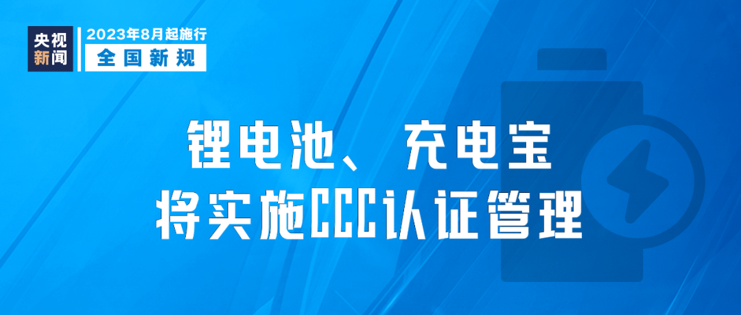 市場監(jiān)管總局發(fā)布公告,自2023年8月1日起,對鋰離子電池和電池組、移動(dòng)電源實(shí)施CCC認(rèn)證管理;自2024年8月1日起,未獲得CCC認(rèn)證證書和標(biāo)注認(rèn)證標(biāo)志的,不得出廠、銷售、進(jìn)口或者在其他經(jīng)營活動(dòng)中使用。