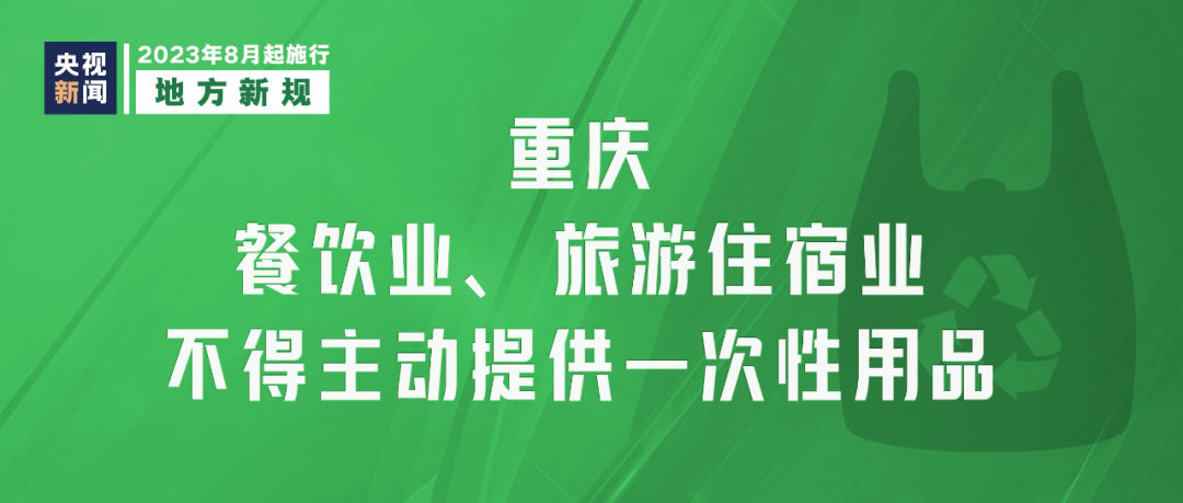 《重慶市一次性用品目錄清單管理辦法》8月1日起實(shí)施,要求重慶市餐飲業(yè)、旅游住宿業(yè)不得主動(dòng)提供一次性用品,鼓勵(lì)使用易降解、可回收再利用的綠色環(huán)保產(chǎn)品。外賣平臺應(yīng)積極引導(dǎo)消費(fèi)者減少使用一次性用品。