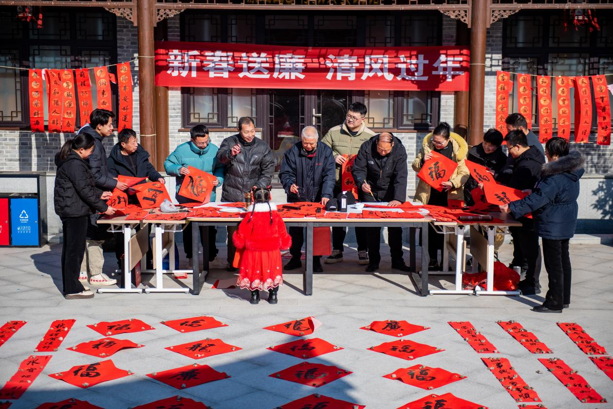 △2024年1月25日,河南省漯河市源匯區(qū)紀(jì)委監(jiān)委組織離退休干部在問(wèn)十鄉(xiāng)陶橋村為群眾義寫(xiě)廉潔春聯(lián)。