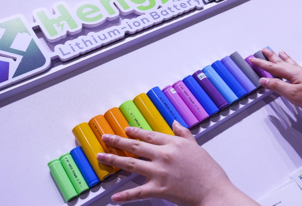 參展商在第135屆廣交會(huì)新能源展區(qū)布置鋰電池展品(2024年4月15日攝)。